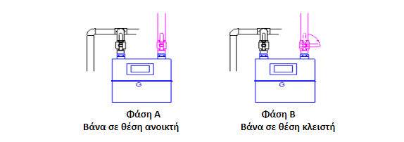 - Μετακινούμε τη βάνα της εσωτερικής εγκατάστασης που βρίσκεται στην έξοδο του μετρητή Φ.Α. από τη θέση «ανοικτή» στη θέση «κλειστή»