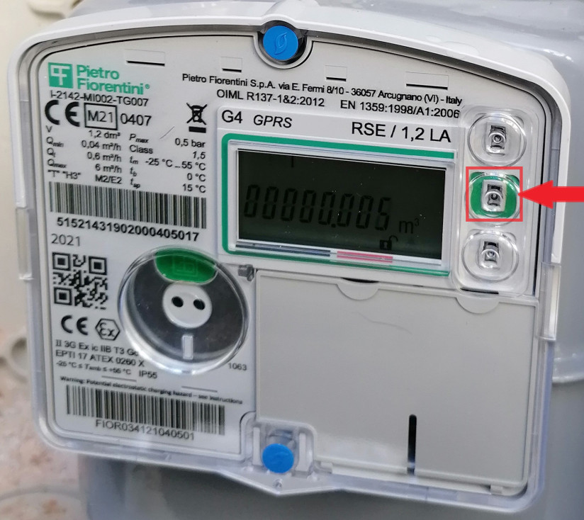 Αν ο μετρητής σας είναι της κατασκευάστριας εταιρείας Fiorentini τότε αυτό που πρέπει να κάνετε είναι να πατήσετε το πράσινο κομβίο που βρίσκεται στα δεξιά του μετρητή σας για 3 δευτερόλεπτα και εν συνεχεία στην οθόνη του μετρητή σας θα εμφανιστεί η ένδειξη.